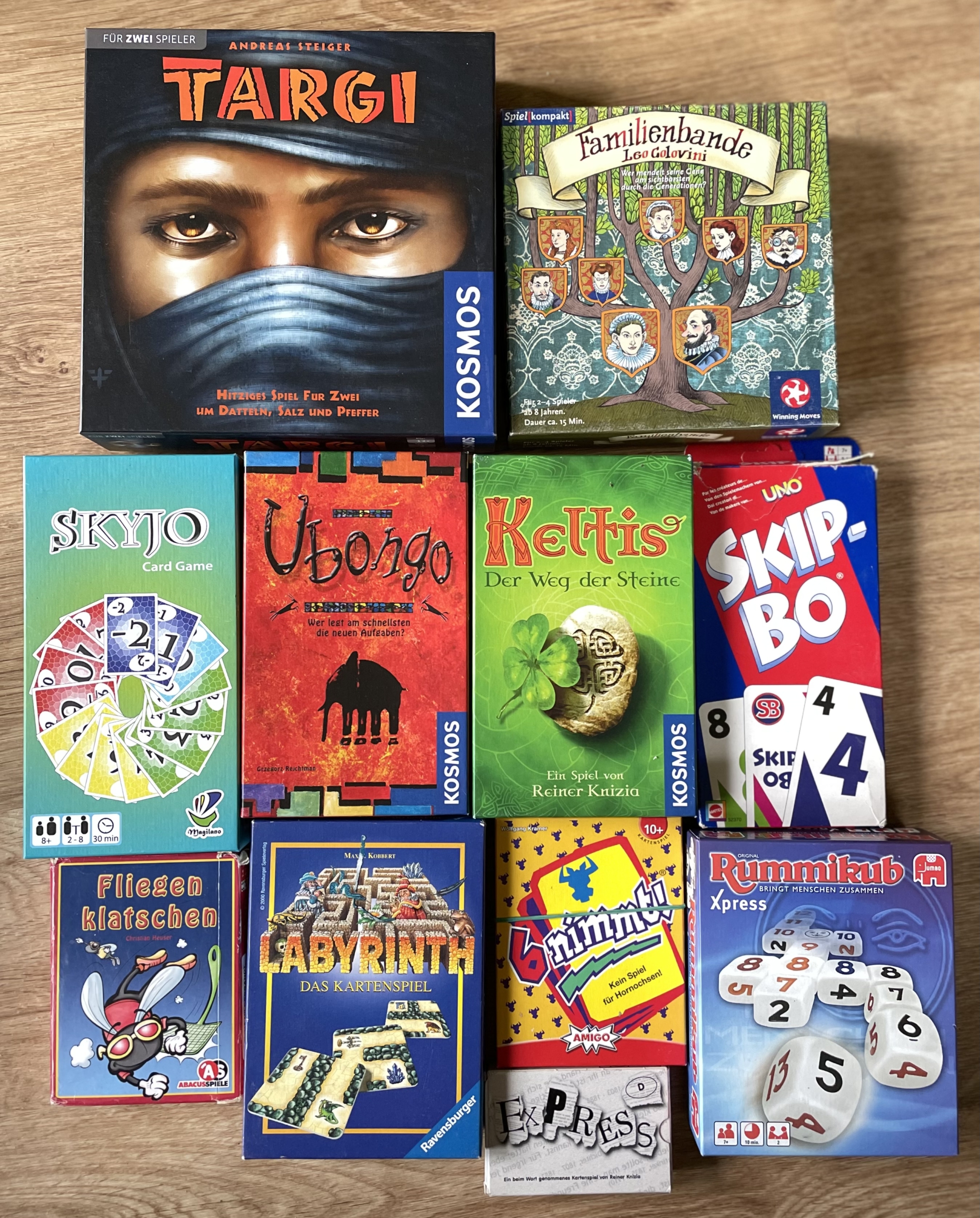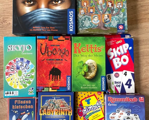 Da wir so gerne spielen, stehen Ihnen mehrere Gesellschaftsspiele zur Verfügung (s. Bild weiter unten). Des Weiteren stehen Ihnen auch Bücher für alle Altersklassen zur freien Verfügung.