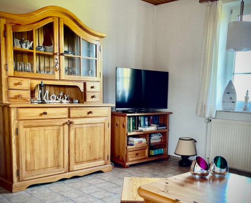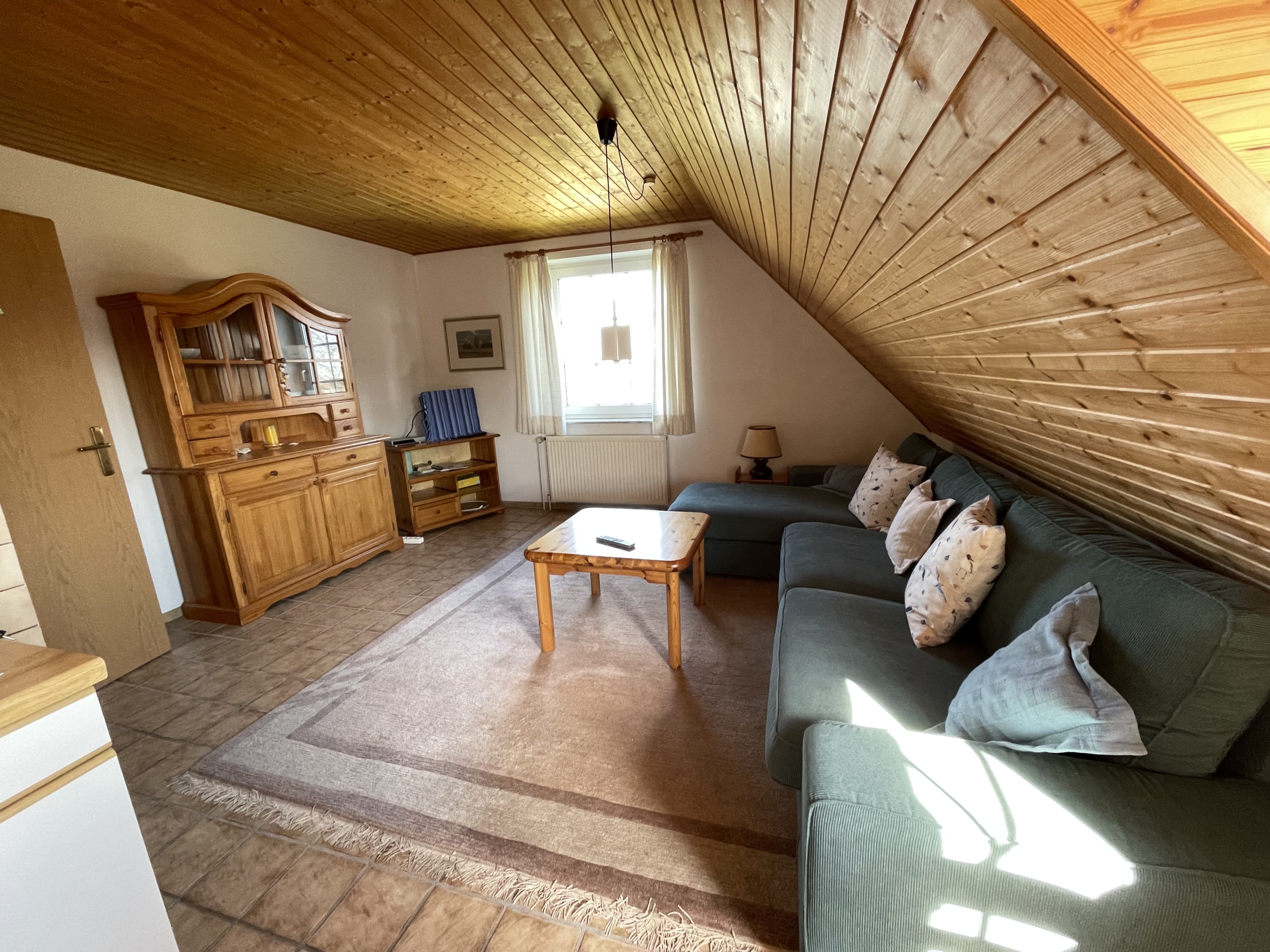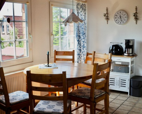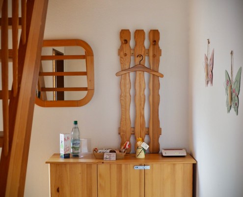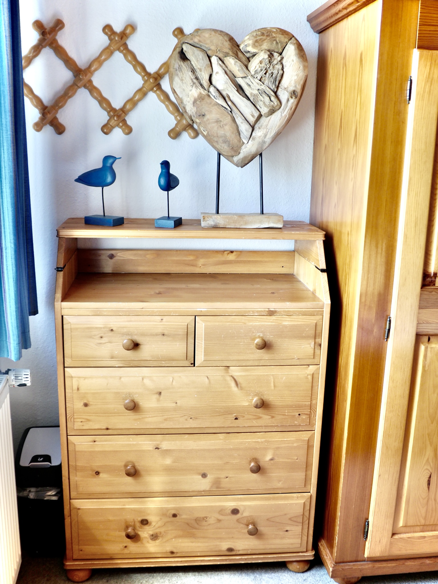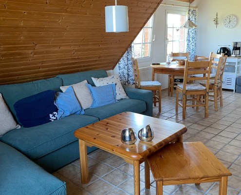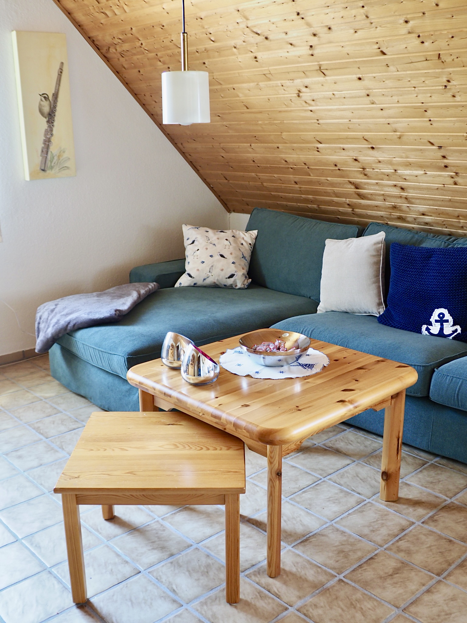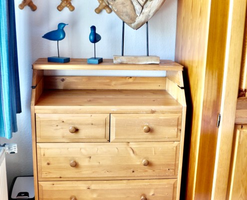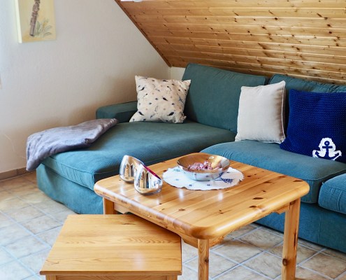 Im Obergeschoss finden Sie eine Wohnung für 6 Personen. Auf der Etage können 2 Erwachsene schlafen im Schlafzimmer. Sie haben die Möglichkeit unser vorhandenes Kinderreisebett dazu zu stellen.
